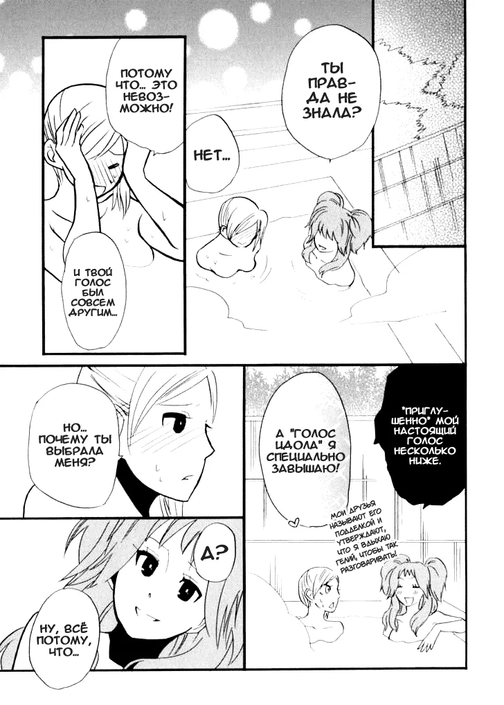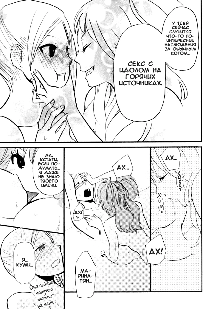 amano shunintaКуми влюблена в красавицу поп-диву Марину и в составе фан-клуба отправляется вместе со своим кумиром в тур на горячие источники.Кажется, что чувства безответны, но кто знает, что может случиться после концерта, когда так хочется расслабиться в горячей ванне.Ещё больше юри читайте на сайте переводчиков Yumeno Yuri.