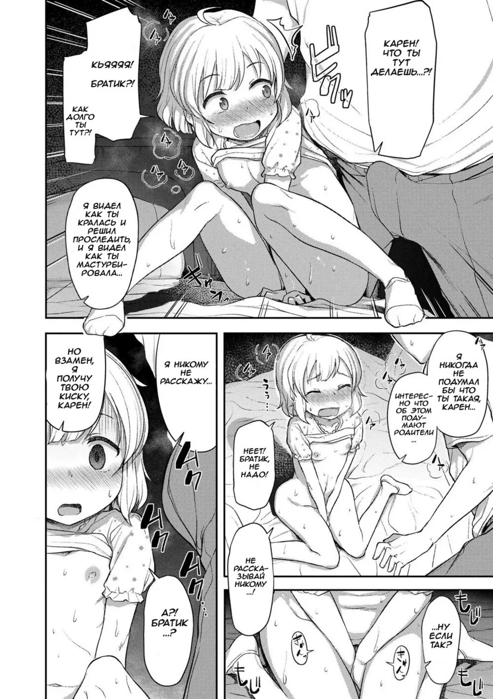hayakeИстория о том как десяти летняя младшеклассница познала удовольствие от секса со старшим братиком.Это мой первый официальный перевод, надеюсь вам понравится.UPD: Манга исправлена с нуля. Извиняюсь что не делал работу над ошибками так долго.
