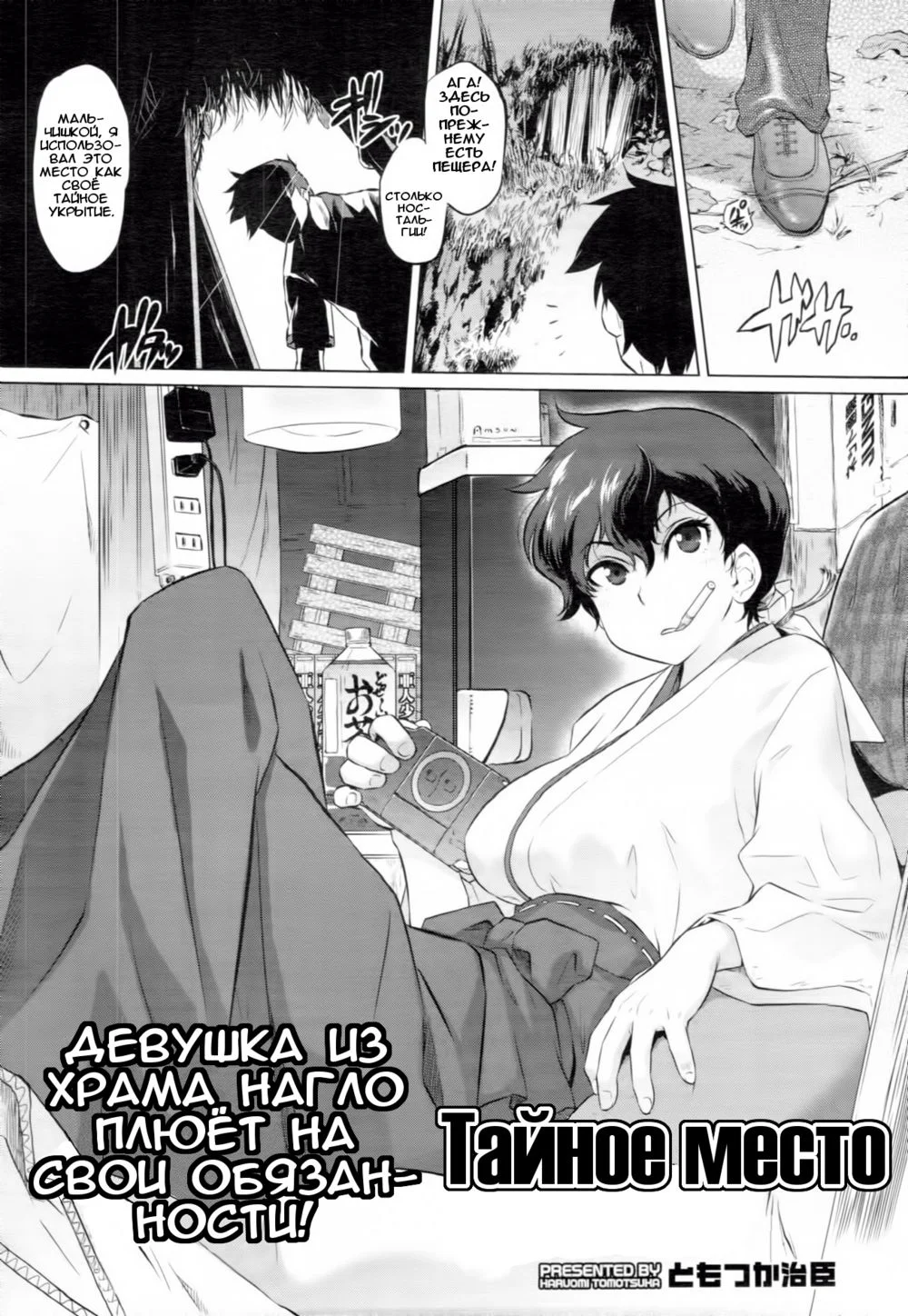 tomotsuka haruomiИз-за экономических проблем в его фирме Макото попал под сокращение и был уволен. Без работы он не смог закончить обучение и вынужден вернуться в родной город, где, по совету своих родителей, будет продолжать семейное дело.Быстро заскучав в маленьком городишке, парень возвращается в памятное по детству тайное место в пещере. К своему удивлению там он обнаруживает храмовую служительницу, нагло занимающуюся неизвестно чем вместо своих прямых обязанностей.