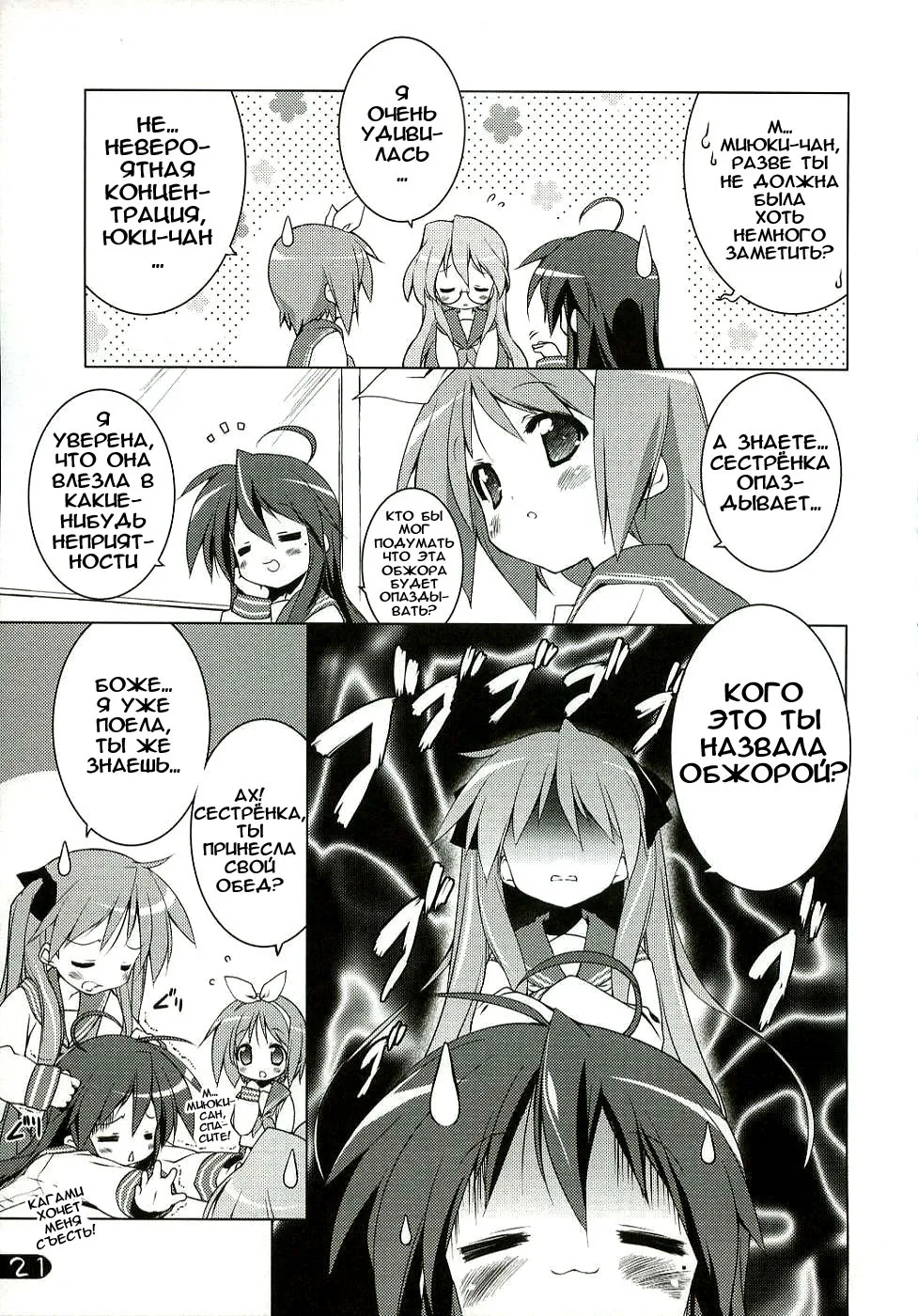 Додзя по аниме "Lucky Star", в которой девочки рассказывают про свой первый раз